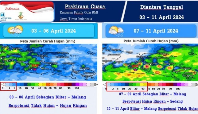 Satelit yang digunakan oleh PT RMI-Mitr Phol adalah GOES dan Satelit NOAA-AVHRR. Perusahaan juga menggunakan laman meteologix.com dan weather-atlas.com untuk memberi informasi kepada para petani tebu binaan mereka.
