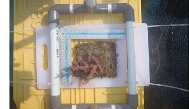 Setiap rak diisi sebanyak 24 buah fragmen karang yang sudah ditempelkan pada substrat buatan yang diletakkan di atas jaring yang dibentangkan menutupi rak berukuran 1 m x 1 m. Perlakuan yang digunakan dalam riset ini yaitu adanya fragmen karang yang dibersihkan dan tidak dibersihkan pada fragmen karang dan substrat buatannya dari kotoran, alga serta biota yang berasosiasi.