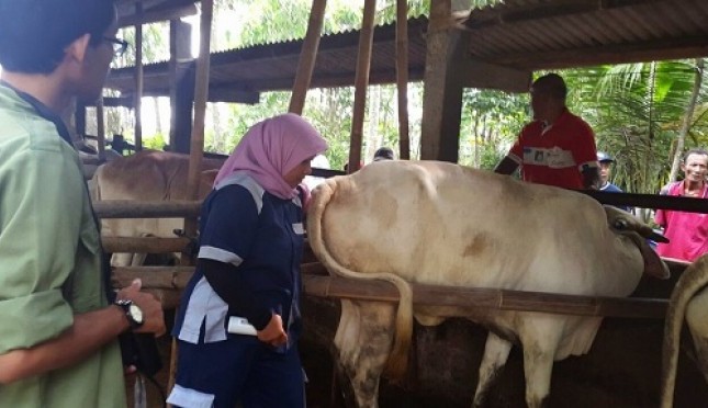 Peneliti IPB melakukan pemeriksaan USG terhadap 10 ekor sapi yang ada di peternakan sapi perah Kawasan Usaha Peternakan Cibungbulang, Bogor | Sumber Foto:Humas IPB