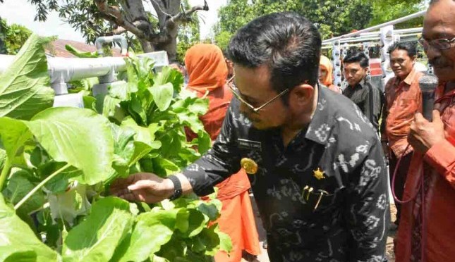 Gubernur Sulawesi Selatan Syahrul Yasin Limpo melakukan tanam 1.000 tanaman selada dan panen 1.000 tanaman sawi.