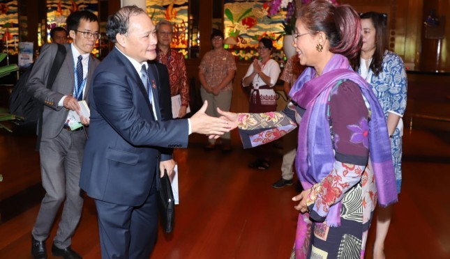 AGRONET--Di sela-sela menghadiri Annual Meetings 2018 Indonesia International Monetary Fund (IMF) World Bank Group di Nusa Dua Bali, Menteri Kelautan dan Perikanan, Susi Pudjiastuti melakukan pertemuan bilateral dengan Deputy Minister of Agriculture and Rural Development Vietnam, Hoàng Van Thang, Jumat (12/10). Bertempat di Ayodya Resort Bali, Menteri Susi dan Hoàng Van Thang membicarakan peluang kerja sama Indonesia dan Vietnam di industri pengolahan perikanan.