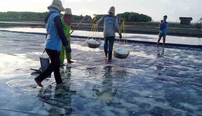 Selama ini para petani garam menyimpan hasil produksi mereka di pinggir-pinggir tambak yang menjadi penampungan sementara. Setelah cuaca membaik dan akses jalannya tidak berlumpur baru dipindah ke gudang penyimpanan. “Sebelum dipindah, garam yang ada sudah terendam. Akibatnya para petani dirugikan hingga jutaan rupiah,” tegasnya.