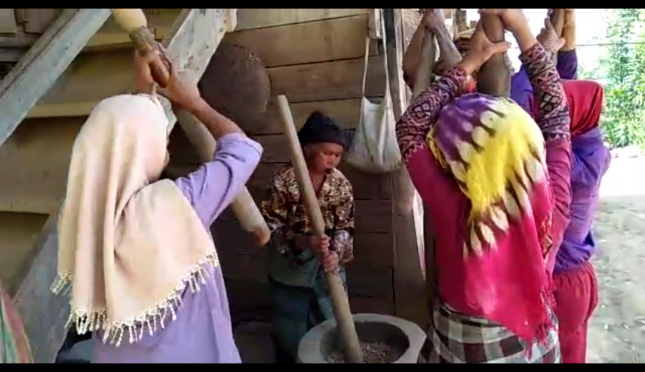 Para Ibu bersama-sama menumbuk biji kopi kering. Inilah rahasia dibalik nikmatnya kopi Toraja. | Sumber Foto:Baznas