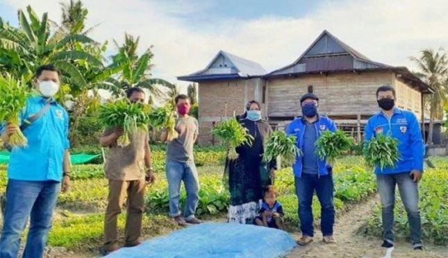 Sebagai wujud kepedulian, Biro Pertanian Komite Nasional Pemuda melakukan panen sayur sembari membagikan masker kepada para petani di Kabupaten Sidrap, Kamis (9/4/2020).. | Sumber Foto:Dok KNPI Sulsel