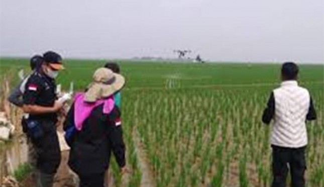 Teknologi (pesawat tanpa awak) selain digunakan di bidang fotografi dan pemetaan, sekarang juga sudah banyak digunakan untuk penyemprotan pestisida dalam rangka pengendalian hama dan penyakit. | Sumber Foto:Dok BBPOPT kementan