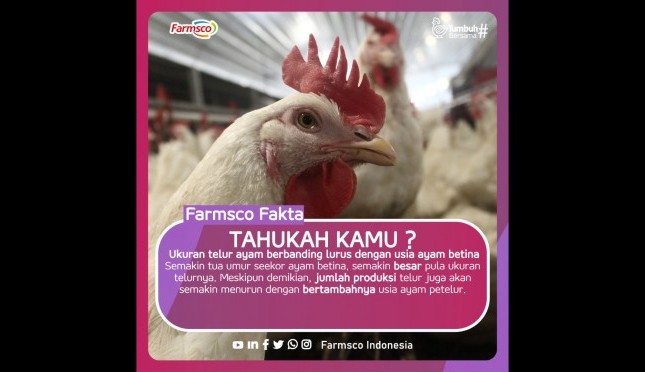 ukuran telur ayam berbanding lurus dengan usia ayam betina? | Sumber Foto:Farmsco