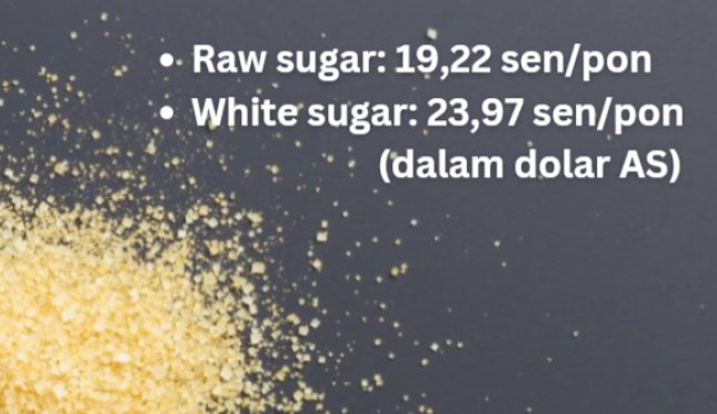 Harga raw sugar berjangka #11 pada 5 September 2024 di Nasdaq: 19,22 sen/pon (dalam dolar AS). Harga tercatat pada saat penutupan Nasdaq di New York, Amerika Serikat (AS). Ini menunjukkan -0,02 sen/pon atau -0,10 persen dibanding harga penutupan pada 4 September 2024.