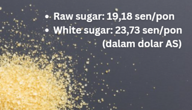 Harga raw sugar berjangka #11 pada 16 September 2024 di Nasdaq: 19,18 sen/pon (dalam dolar AS). Harga tercatat pada saat penutupan Nasdaq di New York, Amerika Serikat (AS). Ini menunjukkan +0,17 sen/pon atau +0,89 persen dibanding harga penutupan pada 13 September 2024.