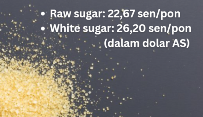 Harga raw sugar berjangka #11 pada 30 September 2024 di Nasdaq: 22,67 sen/pon (dalam dolar AS). Harga tercatat pada saat penutupan Nasdaq di New York, Amerika Serikat (AS). Ini menunjukkan -0,12 sen/pon atau -0,53 persen dibanding harga penutupan pada 27 September 2024.