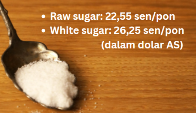 Harga raw sugar berjangka #11 pada 7 Oktober 2024 di Nasdaq: 22,55 sen/pon (dalam dolar AS). Harga tercatat pada saat penutupan Nasdaq di New York, Amerika Serikat (AS). Ini menunjukkan -0,46 sen/pon atau -2,00 persen dibanding harga penutupan pada 4 Oktober 2024.