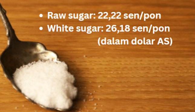 Harga raw sugar berjangka #11 pada 30 Oktober 2024 di Nasdaq: 22,22 sen/pon (dalam dolar AS). Harga tercatat pada saat penutupan Nasdaq di New York, Amerika Serikat (AS). Ini menunjukkan +0,14 sen/pon atau +0,63 persen dibanding harga penutupan pada 29 Oktober 2024.