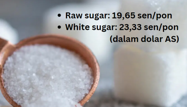 Harga raw sugar berjangka #11 pada 3 Januari 2025: 19,65 sen/pon (dalam dolar AS). Harga tercatat saat penutupan pasar di New York, Amerika Serikat (AS). Ini menunjukkan -0,08 sen/pon atau -0,41 persen dibanding harga penutupan pada 2 Januari.