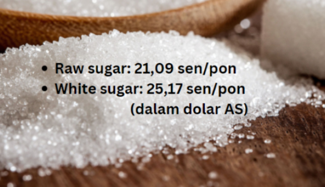 Harga white sugar atau gula kristal putih berjangka #5 pada 24 Februari 2025 di ICE/EU tercatat 554,70 dolar/ton atau 25,17 sen/pon (dalam dolar AS). Ini menunjukkan -5,50 sen/pon atau -0,98 persen dibanding harga penutupan pada 21 Februari.