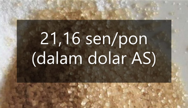 Harga raw sugar berjangka no.11 per 10 Maret 2023 di Nasdaq: 21,16 sen/pon (dalam dolar AS). Harga tercatat pada saat penutupan Nasdaq pukul 17.00 waktu New York, Amerika Serikat (AS). Ini menunjukkan kenaikan 0,01 sen atau 0,05 persen dibanding harga penutupan sehari sebelumnya, pada Kamis (9/3/2023) waktu AS. *