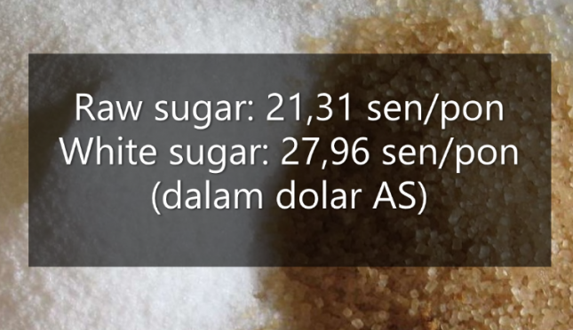 Harga raw sugar berjangka no.11 per 28 Maret 2023 di Nasdaq: 21,31 sen/pon (dalam dolar AS). Harga tercatat pada saat penutupan Nasdaq pukul 17.00 waktu New York, Amerika Serikat (AS). Ini menunjukkan +0,38 sen/pon atau +1,82 persen dibanding harga penutupan pada 27 Maret 2023 waktu AS.