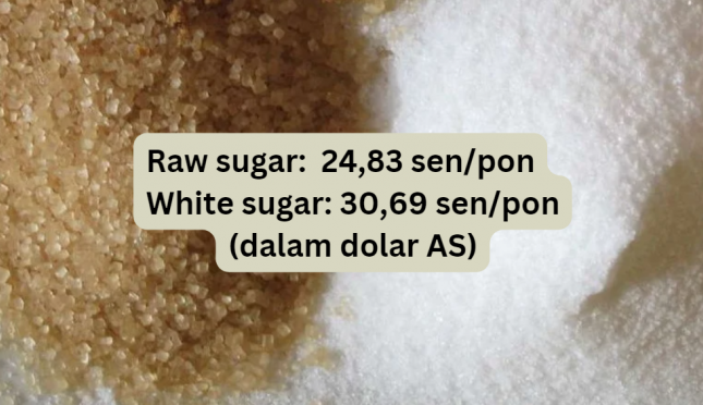 Harga raw sugar berjangka no.11 per 21 April 2023 di Nasdaq: 24,83 sen/pon (dalam dolar AS). Harga tercatat pada saat penutupan Nasdaq pukul 17.00 waktu New York, Amerika Serikat (AS). Ini menunjukkan -0,42 sen/pon atau -1,66 persen dibanding harga penutupan pada 20 April 2023 waktu AS.