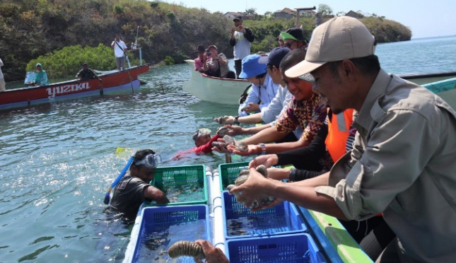 Kegiatan restocking teripang. | Sumber Foto: LIPI