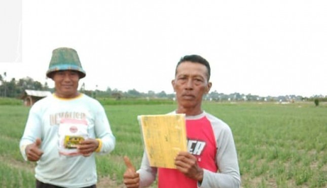 “Pada saat tanaman bawang merah berumur 15 hari dengan tinggi tanaman sekitar 15 cm, lahan bawang merah ditaburi dengan trichoderma. Pemberian trichoderma ini dimaksudkan untuk mengendalikan penyakit moler atau Layu Fusarium. Ulat bawang juga termasuk kendala dalam pengamanan produksi walaupun serangannya masih kategori ringan,” ujar Agus.