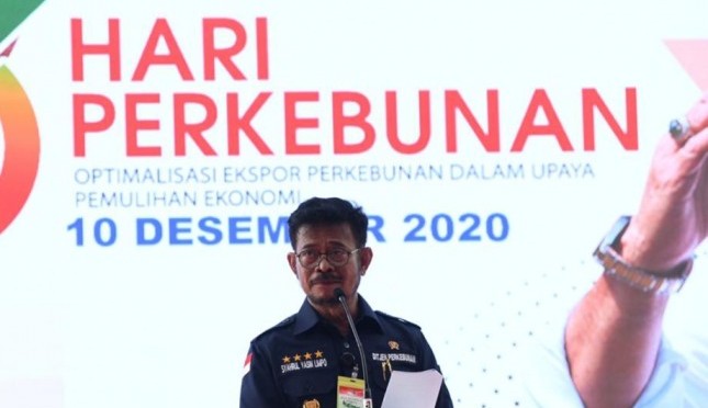 AGRONET -- Kementerian Pertanian (Kementan) menyelenggarakan peringatan hari perkebunan ke-63 di Serpong, Tangerang Selatan, Kamis, 10 Desember 2020. Tahun ini Acara yang digelar mengusung tema Optimalisasi Ekspor Perkebunan dalam Upaya Pemulihan Ekonomi Nasional.