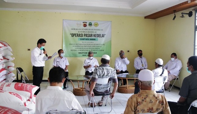 AGRONET -- Upaya stabilisasi pasokan dan harga kedelai digencarkan di Jawa Barat. Puskopti (Pusat Koperasi Produsen Tempe dan Tahu Indonesia) Jawa Barat, Dinas Ketahanan Pangan dan Peternakan Provinsi Jawa Barat, dan Satgas Pangan Jawa Barat, melakukan operasi pasar kedelai pada Rabu (13/01. Operasi pasar kedelai tersebut dilakukan langsung ke pengrajin tahu tempe di tiga lokasi, yaitu Kota Bandung, Kabupaten Bandung, dan Kabupaten Cianjur.