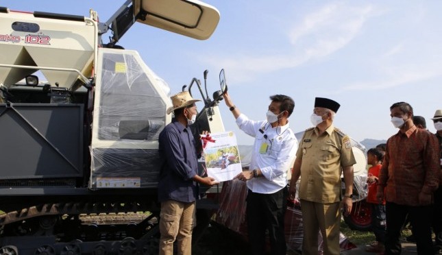 Adapun bantuan pertanian dari Presiden Jokowi yang diserah Mentan SYL yakni berupa handtraktor 4 unit, combine harvester besar 1 unit, combine harvester sedang 1 unit, power tresher multiguna 1 unit dan packing beras 1 unit serta mesin pengering (vertical dryer) padi berkapasitas 10 ton sebanyak 1 unit.