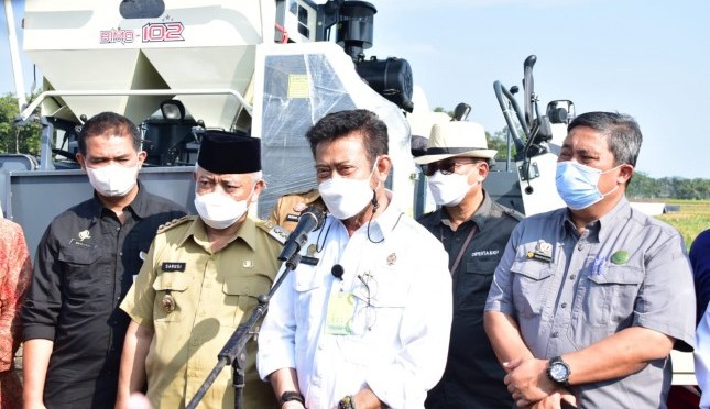 Mentan Syahrul Yasin Limpo memberi keterangan usai menyerahkan bantuan Alsintan untuk petani di Kabupaten Malang. | Sumber Foto:Humas Kementan