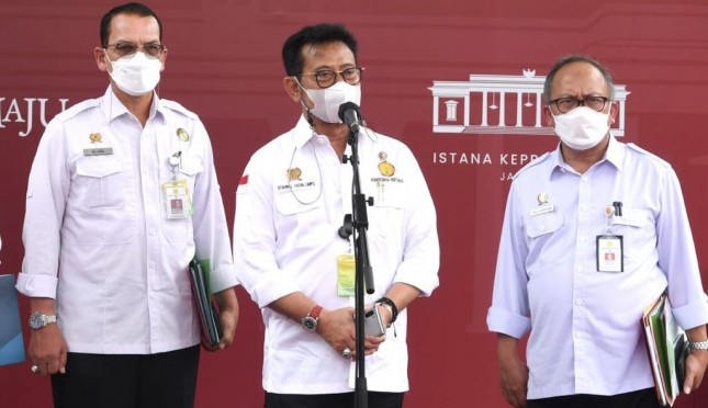 Mentan SYL memberikan keterangan kepada media seusai rapat terbatas bersama Presiden RI, Rabu, 6 Oktober 2021. | Sumber Foto:Dok Kementan