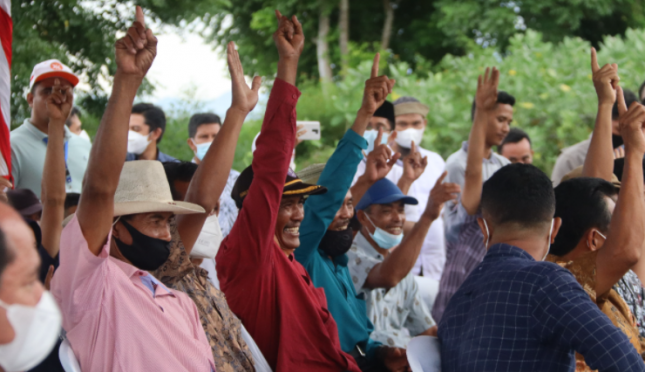 Bentuk dukungan tersebut diwujudkan dalam bentuk deklarasi. Masyarakat Sumbawa yang menyatakan bahwa, pertama, mendukung dan setuju pembangunan tambak udang terintegrasi berbasis kawasan di Kecamatan Moyo Utara, Kabupaten Sumbawa. Kedua, masyarakat Sumbawa setuju dan ikut serta mengamankan proses pembangunan tambak udang terintegrasi berbasis kawasan.