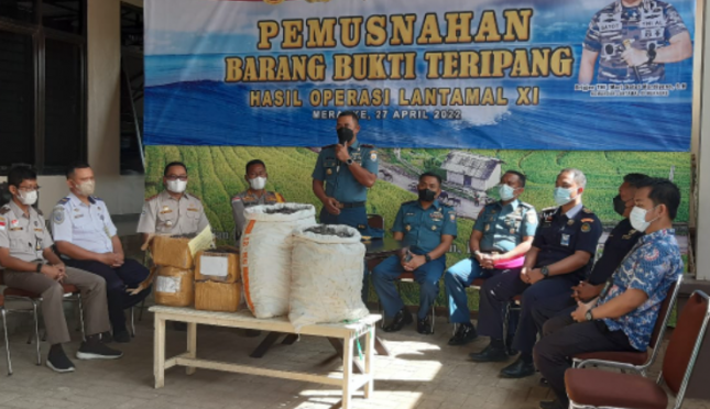 AGRONET -- Kementerian Kelautan dan Perikanan (KKP) bergerak cepat guna mencegah penyebaran hama dan penyakit ikan karantina (HPIK). Bekerja sama dengan Bea Cukai dan Lantamal XI Merauke, Polres Merauke, Dinas Perikanan, Satwas PSDKP serta LPSPL Satker Merauke, Stasiun Karantina Ikan, Pengendalian Mutu dan Keamanan Hasil Perikanan (BKIPM) Merauke melakukan pemusnahan teripang yang diduga tertular HPIK.