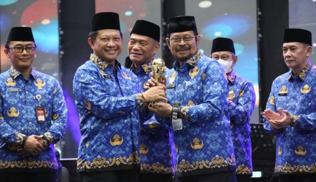 AGRONET -- Menteri Pertanian Syahrul Yasin Limpo (Mentan SYL) diberikan penghargaan Korp Pegawai Republik Indonesia (Korpri) Award pada puncak acara HUT Korpri ke 51 di Jakarta. Penghargaan Korpri Award ini diberikan langsung oleh Menteri Dalam Negeri (Mendagri) Tito Karnavian yang juga selaku Dewan Pembina Korpri.