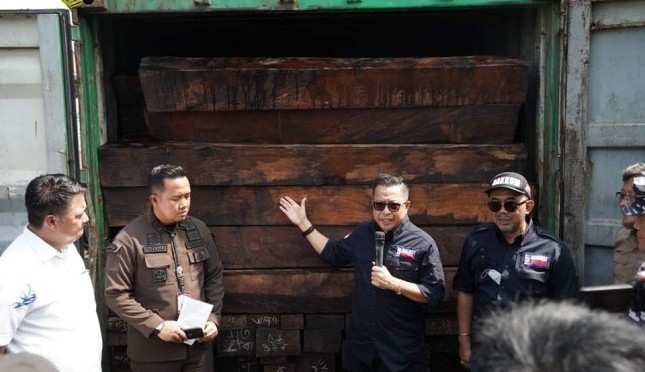 Kontainer bermuatan Kayu Olahan yang diduga berasal dari hasil pembalakan liar di Hutan Papua | Sumber Foto:KLHK