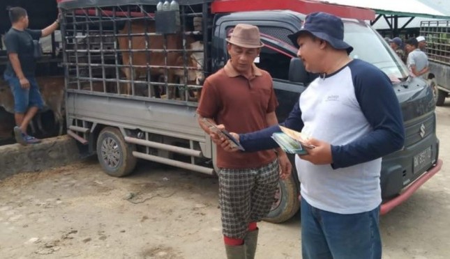 Sub Koordinator Informasi dan Jasa Produksi Yusmadi,SP,.M.Si dan Koordinator Medik Veteriner drh.T.Rizalsyah sangat aktif memberikan informasi terkait KIE PMK sekaligus membagikan brosur pencegahan dan penanggulangan PMK kepada peternak di Pasar Hewan Cempeudak Panton Labu Kabupaten Aceh Utara.