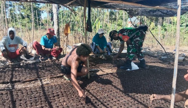 AGRONET -- Dalam rangka memastikan keberlangsungan program ketahanan pangan sebagai prioritas pemerintah guna menjamin ketersediaan pangan bagi warga masyarakat, Babinsa Koramil 01/Manokwari Sertu Denius Jikwa dan Serda Syahril melakukan pendampingan terhadap para petani di wilayah binaanya di Reremi Distrik Manokwari Barat, Selasa (07/11/2023).