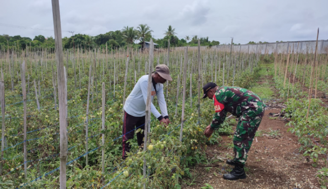 AGRONET - Dalam Upayanya turut menjaga kestabilan swasembada pangan, Babinsa Koramil 1801-01/Manokwari Serda M. Munir melaksanakan kegiatan Bintahwil dengan lakukan pendampingan kepada petani Tomat di kompleks Lembah Hijau Kelurahan Wosi, Distrik Manokwari Barat, Kabupaten Manokwari, Provinsi Papua Barat, Rabu (07/02/2024).