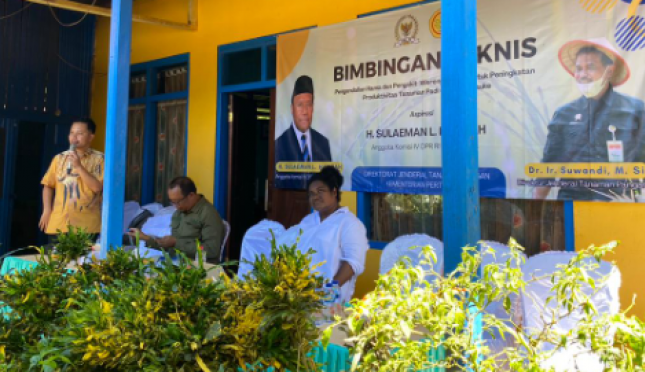 Pada Minggu (21/04/2024) dilaksanakan bimbingan teknis Pengendalian Hama Wereng Batang Cokelat Padi di Kampung Candra Jaya, Distrik Kurik, Kab. Merauke. Kegiatan tersebut merupakan bagian dari Kerjasama Direktorat Jenderal Tanaman Pangan Kementerian Pertanian dan Komisi IV DPR RI T.A. 2024. Turut hadir dalam Kegiatan tersebut H. Sulaiman L. Hamzah (Anggota Komisi IV DPR RI Fraksi Nasdem), Anggota DPR Provinsi Papua Fauzan Nihayah, Ketua DPRD Kab. Merauke Sugiarto Sugiarto, Kabid Oenyuluhan Dinas Pertanian Provinsi Papua Selatan, Erni Widiyanti. SP., M.Si serta Perwakilan Direktorat Jenderal Tanaman Pangan Achmad dan Narasumber dari BSIP Papua Merlin Rumbarar yang menyampaikan materi Pengendalian Hama Wereng.