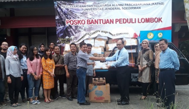 Ketua Umum Keluarga Alumni Pascasarjana Unsoed, Dr. Drs. Hananto Prasetyo, S.H., M.H. yang turut serta melepas pemberangkatan armada bantuan Unsoed Peduli Lombok ini mengatakan menyebutkan bahwa sinergisme berbagai unsur sivitas akademika dan alumni diharapkan terus berlanjut dan berkembang, untuk meningkatkan daya dukung dan kontribusi bagi masyarakat. Pada kesempatan yang sama, Prof. Ir. Totok Agung Dwi Haryanto, M.P., Ph.D selaku Direktur Program Pascasarjana Unsoed, menambahkan kalau bantuan ini sebagai bentuk kepedulian terhadap sesama sekaligus sebagai bagian dari program penanaman dan pengembangan karakter kecendekiawanan.