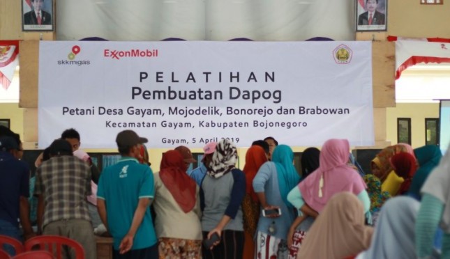 AGRONET -- Petani Peserta Sekolah Lapang Pertanian (SLP), Program Pengembangan Masyarakat dari ExxonMobil Cepu Limited bersama Lembaga Penelitian dan Pengabdian Masyarakat (LPPM) Universitas Bojonegoro, Jum’at (5/4) mengikuti pelatihan pembuatan dapog.