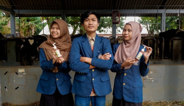 Tiga mahasiswa Fakultas Peternakan UNDIP menciptakan I-Care : Antiseptik 2in1 (Hand sanitizer dan Gel Puting) pada Program Kreativitas Mahasiswa (PKM) 2019 | Sumber Foto:Dok Instimewa