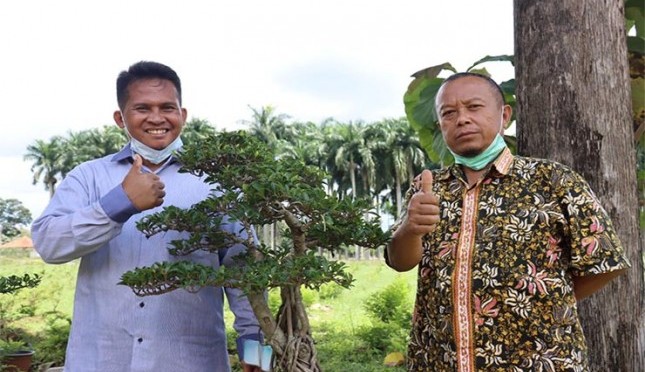 Hidayat , Ketua Kelompok Tani Bonsai Mande Mandiri) yang didampingi Budi Radiansyah, iinisiator pengembangan bonsai BBPPMPV Pertanian. | Sumber Foto:Dok BBPPMPV