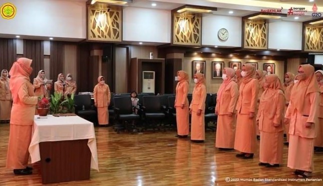 AGRONET -- Dharma Wanita Persatuan (DWP) Lingkup Badan Penelitian dan Pengembangan Pertanian menyelenggarakan kegiatan serah terima jabatan dan pelantikan bertempat di Auditorium Utama Kantor Pusat Balitbangtan/BSIP pada Kamis (17/11).