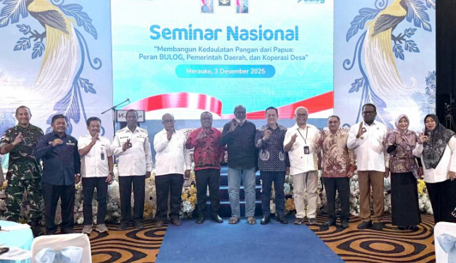 AGRONET -- Perum BULOG menyelenggarakan Seminar Nasional bertema “Membangun Kedaulatan Pangan dari Papua: Peran BULOG, Pemerintah Daerah dan Koperasi Desa” yang berlangsung di Swiss Bel Hotel, Merauke, dan diikuti oleh 250 peserta dari berbagai unsur pemerintah, akademisi, lembaga ekonomi desa, hingga pelaku usaha pangan. Kegiatan ini menjadi forum strategis untuk membahas penguatan pangan nasional melalui optimalisasi potensi Kabupaten Merauke sebagai “Gerbang Food Estate dan Lumbung Pangan Nasional” di wilayah Timur Indonesia. Seminar ini turut dihadiri oleh Gubernur Papua Selatan, Bupati Merauke, Wakil Bupati Merauke Ketua DPRD Kabupaten Merauke, Forkopimda Kabupaten Merauke, serta Pimpinan Perguruan Tinggi dari Universitas Musamus, Universitas Cenderawasih dan Universitas Papua.