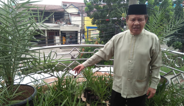 Mardhatillah menunjukkan kurma barhee tropis di dalam pot yang sudah berusia 11 bulan di kediamannya di Bekasi. Diharapkan berbuah di pot dan dipelihara di sini sampai usia sekitar 10 tahun. | Sumber Foto: AGRONET