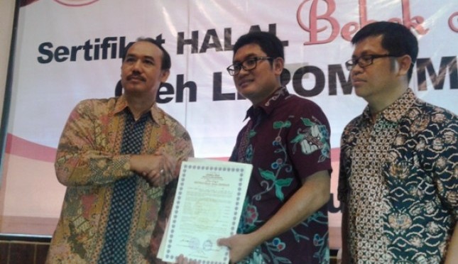 Penyerahan sertifikat halal pada Resto Bebek Kaleyo, diterima Hendri Prabowo, sang owner. | Sumber Foto:Dok Bebek Kaleyo