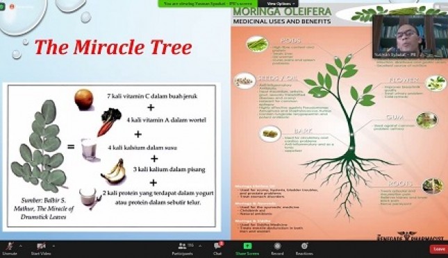 “Tanaman Kelor mendapat julukan Miracle Tree atau The Tree of Life karena manfaatnya yang sangat besar bagi kesehatan. Dalam kuantitas yang sama yakni 100 gram, vitamin C pada tanaman kelor tujuh kali lebih banyak dari jeruk, kandungan vitamin A empat kali lebih banyak dari wortel, kalsiumnya empat kali lebih banyak dari susu, kaliumnya tiga kali lebih banyak dari pisang dan kandungan protein dua kali lebih banyak dari telur,” ujar Prof Dr Yusman Syaukat saat menjadi moderator webinar di IPB melalui Zoom Meeting bertajuk Kelor Bagi Kesejahteraan Masyarakat pada Rabu (30/12).