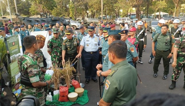 Panglima TNI Laksamana Yudho Margono didampingi Kasum TNI Letjen TNI Bambang Ismawan mengunjungi stand Teritorial TNI Angkatan Darat, meninjau teknologi unggulan Komando Daerah Militer Jawa Tengah (KODAM IV Diponegoro), Inpago Unsoed Protani dan Inpari U | Sumber Foto:Unsoed