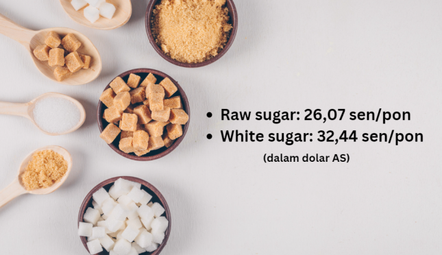 Raw Sugar Harga raw sugar berjangka no.11 per 8 Mei 2023 di Nasdaq: 26,09 sen/pon (dalam dolar AS). Harga tercatat pada saat penutupan Nasdaq pukul 17.00 waktu New York, Amerika Serikat (AS). Ini...