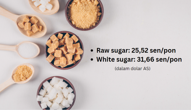 Raw Sugar Harga raw sugar berjangka no.11 per 1 Mei 2023 di Nasdaq: 25,54 sen/pon (dalam dolar AS). Harga tercatat pada saat penutupan Nasdaq pukul 17.00 waktu New York, Amerika Serikat (AS).     White Sugar Harga...