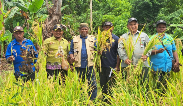 Panen perdana padi lahan kering (Gogo) di Kampung Arowi Distrik Manokwari Timur Kabupaten Manokwari | Sumber Foto:BRMP Papua Barat