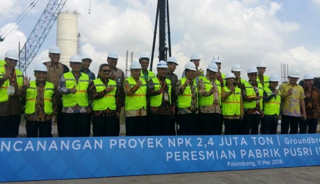 Peresmian pengoperasian pabrik pupuk Pusri 2B milik anak usaha PT Pupuk Indonesia, PT Pupuk Sriwijaya, sekaligus pencanangan proyek NPK 2,4 Juta Ton di Palembang, Jumat (11/5/2018) | Sumber Foto:Biro Humas dan Informasi Publik Kementan