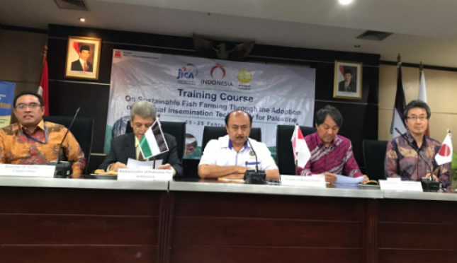 Duta Besar Palestina untuk Indonesia, H.E. Zuhair Al Shun, menyampaikan apresiasi atas penyelenggaraan pelatihan teknologi IB pada ikan bagi para petugas di Palestina yang merupakan kerja sama Triangular antara Palestina, JICA yang didukung oleh Pemerintah Jepang, dengan Kementerian Pertanian RI yang difasilitasi oleh Kementerian Luar Negeri Republik Indonesia. Pelatihan ini merupakan salah satu kegiatan yang disepakati dalam the Three Year Activity Plan, Indonesia berkolaborasi dengan Jepang melalui JICA untuk membuat kegiatan berdasarkan kebutuhan Palestina.